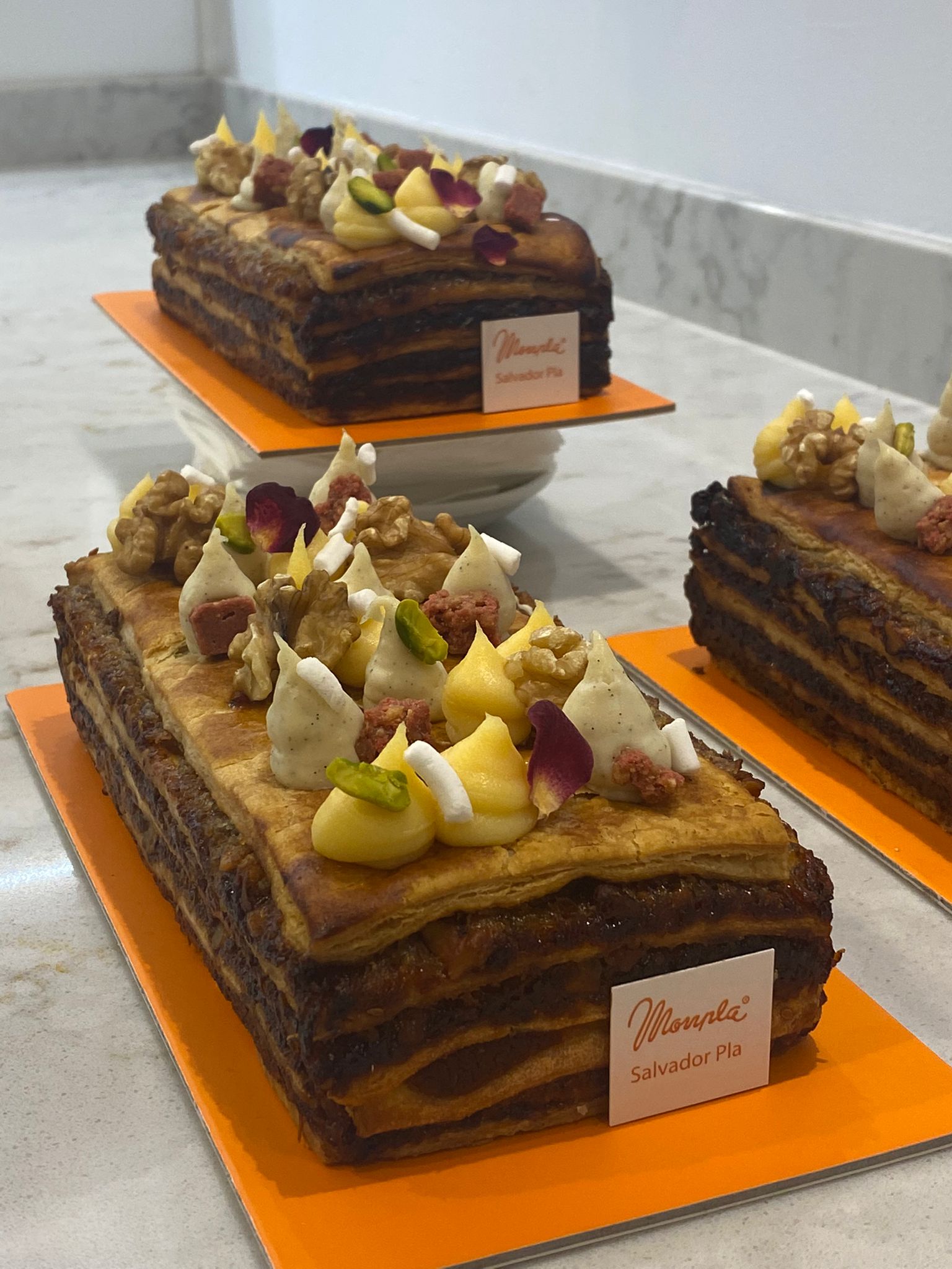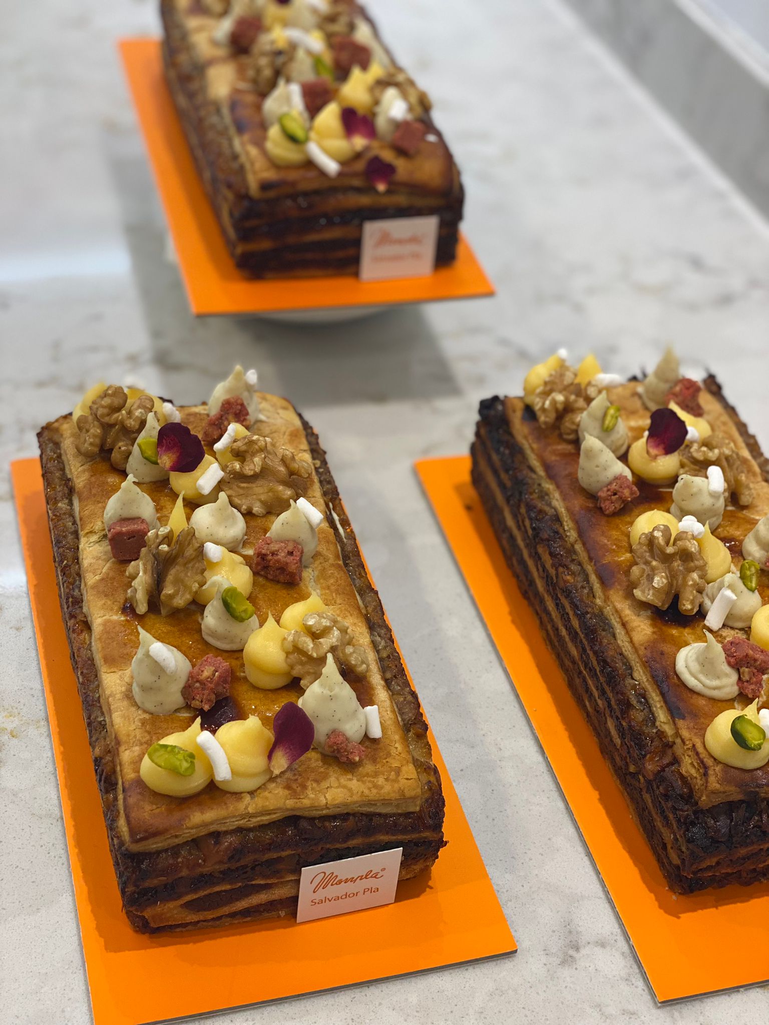 Ingredientes: harina de trigo , agua , mantequilla,sal, yema clara ( huevos frescos, azúcar y almidón)nueces, cabello de ángel.